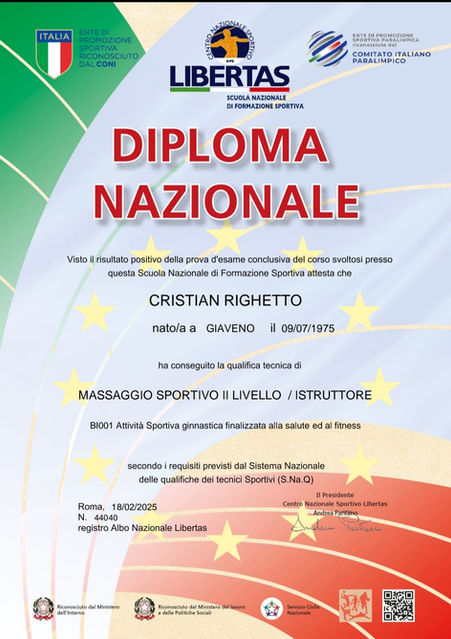 Ciao sono Cristian ! Massaggiatore sportivo certificato SNAQ e Operatore Olistico.
