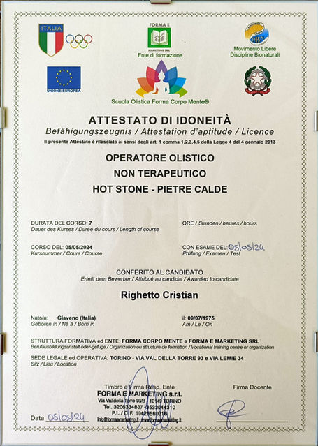 Ho iniziato studiando anatomia e biomeccanica, per comprendere a fondo il corpo umano e imparare a trattarlo con consapevolezza. Successivamente ho conseguito il diploma di istruttore di massaggio sportivo certificato SNAQ, con riconoscimento a livello europeo.